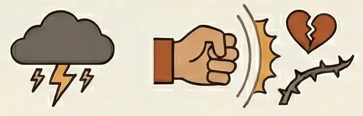 The literal meaning is suffering or affliction, but here, the meaning may be taken as the causes of suffering.